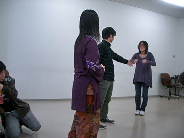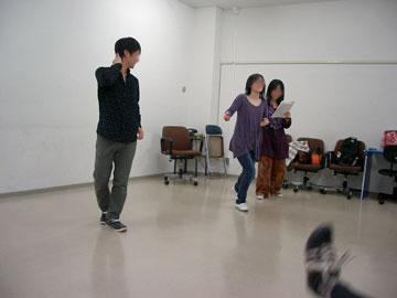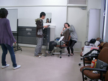 左でiPodを操作しているのが音響担当の方のようです。今回の劇では音はすごく重視されるであろうと予想されるので音響さん頑張ってください!!