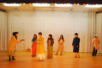 今年のヒンディー語劇団は、踊り子を含めて役者は17人、スタッフを含めて総勢20人ほど、1,2,4年生が同数ほどで構成されているそうです。